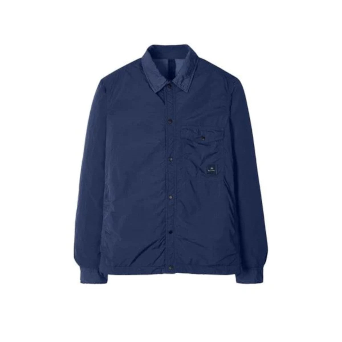 Regular Fit Overshirt from Paul Smith, crafted from 100% recycled nylon with a rich garment dyed finish. Featuring a full press stud closure, press-stud fastening at the cuffs, quilted lining, on-seam side pockets, sports stripe' collar loop detail and chest pocket with PS Paul Smith logo label.